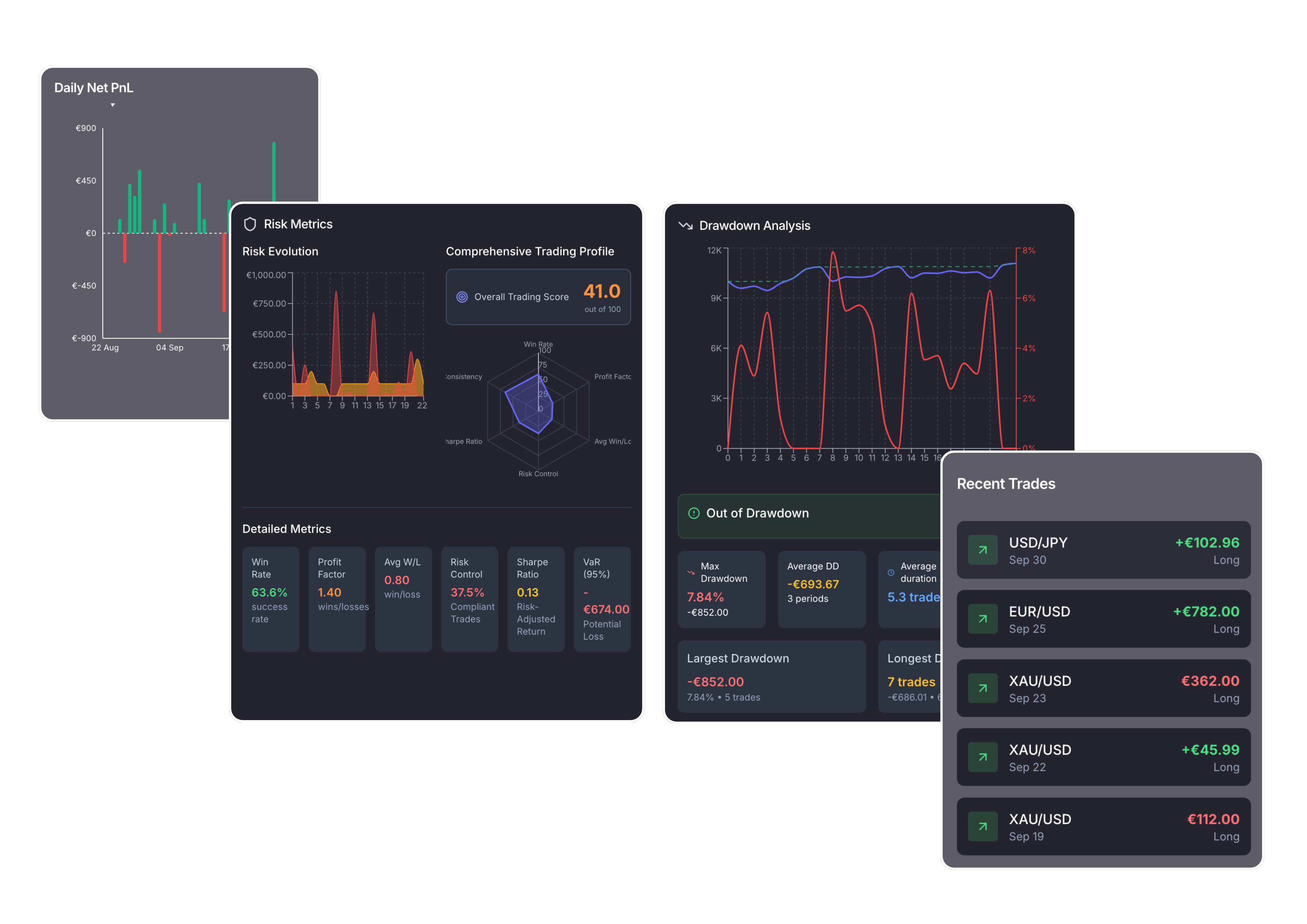 This tool gives you a complete vision of your trading journey. Whether you trade Forex, stocks, or crypto, the Dashboard makes it easier to analyze your results and keep improving.